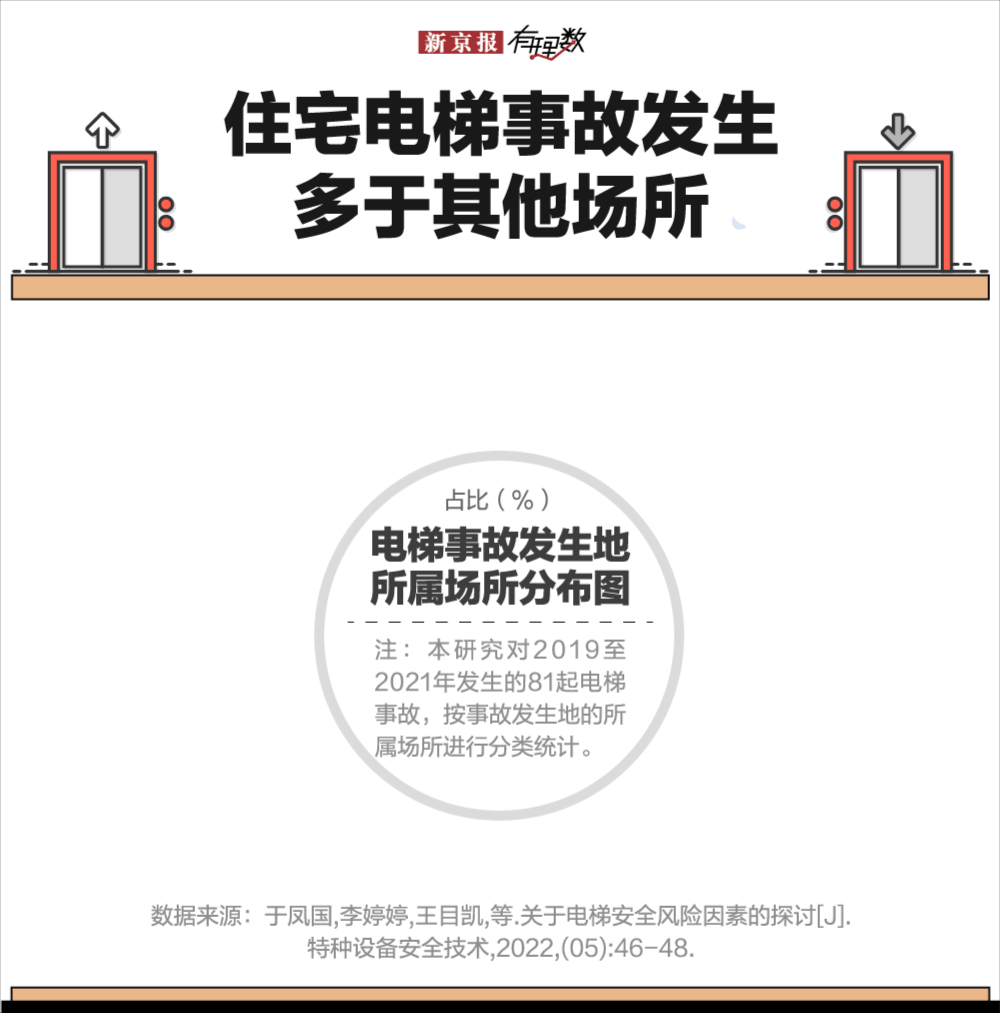 而在所有电梯事故发生场所中,住宅电梯是高发区。在一项关于2019-2021年间电梯安全风险因素探讨的研究中,数据显示住宅电梯的事故占比近六成。